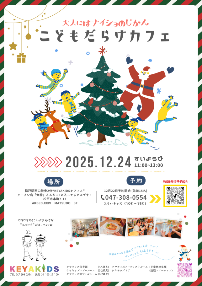 12月24日(水)11:00〜13:00、松戸駅西口徒歩2分の「KEYAKIDSオフィス」にて、